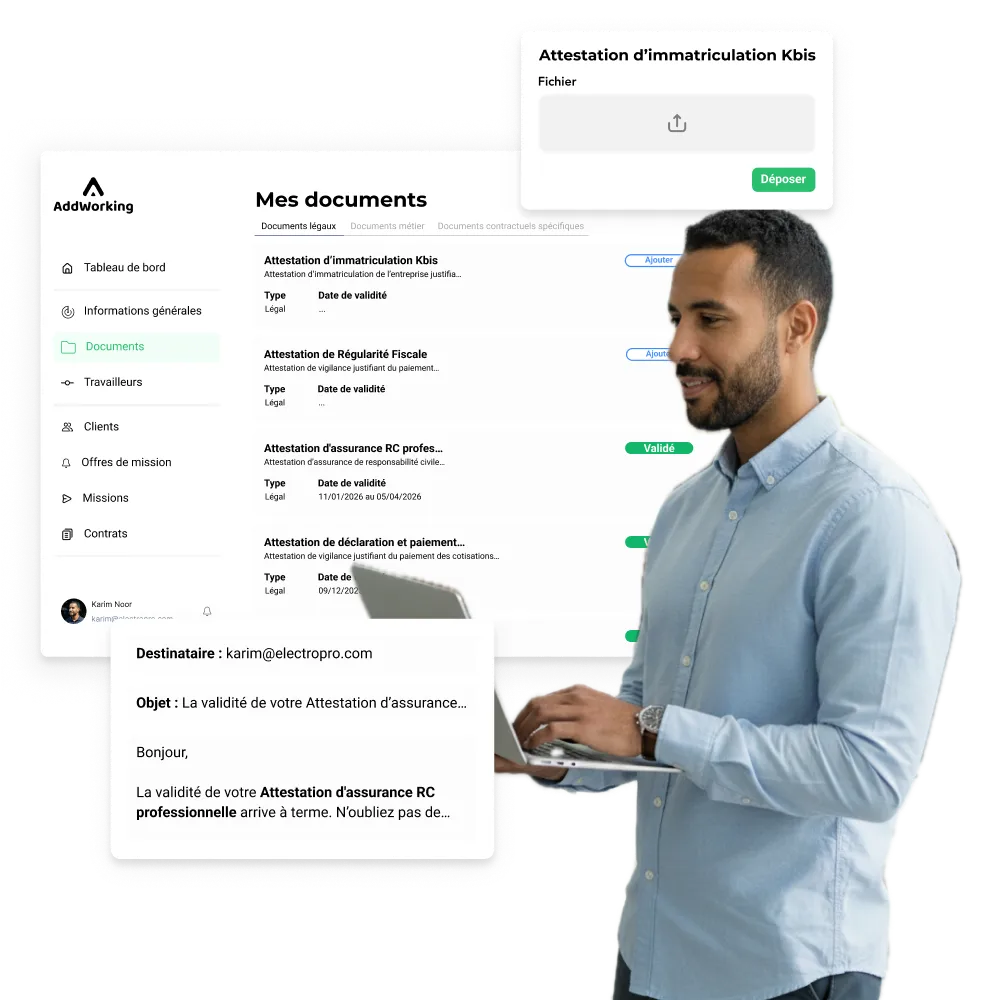AddWorking contrôle automatiquement les documents légaux obligatoires de vos partenaires :